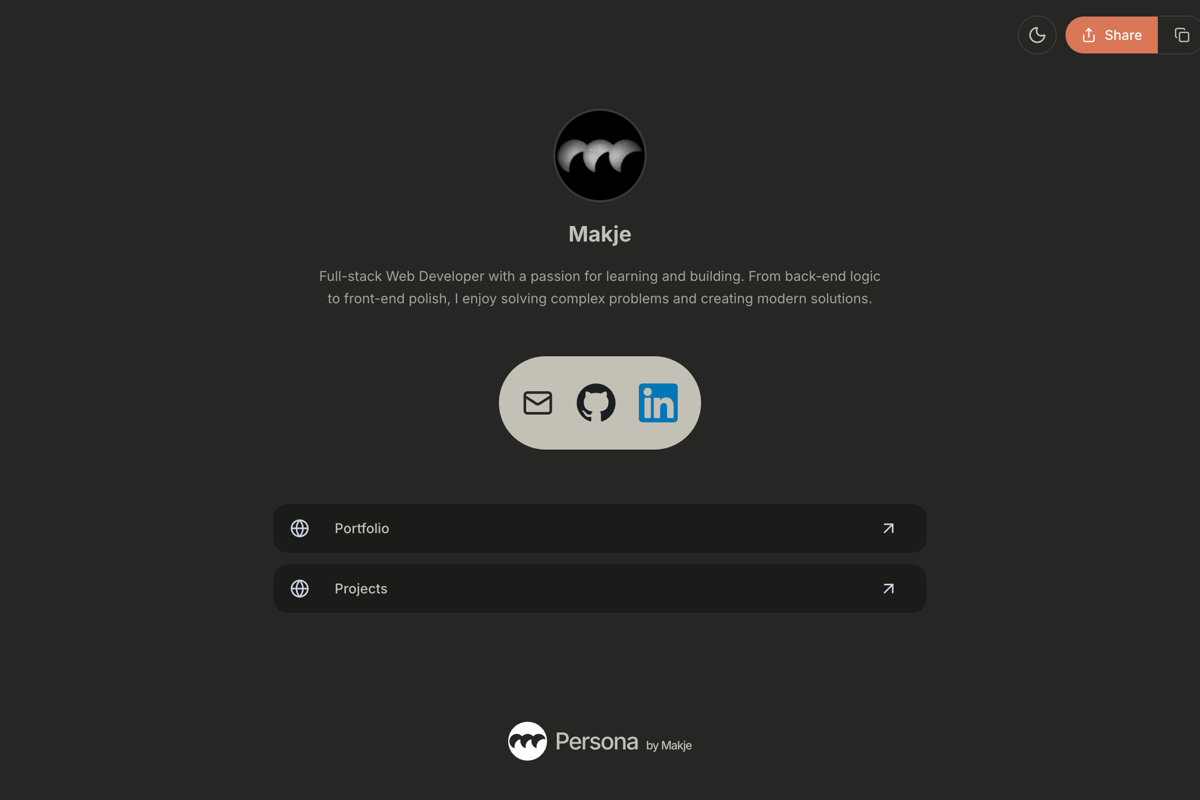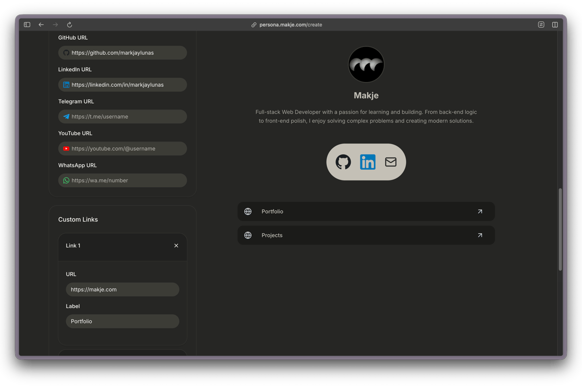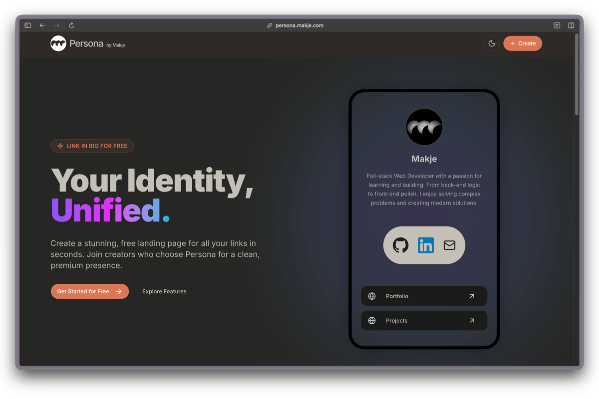 Persona is an all-in-one identity engine designed to replace traditional "link-in-bio" tools with a faster and professionally branded solution. It allows users to consolidate their social presence, professional portfolio, and contact information into a single, high-performance URL. The project focuses on extreme data efficiency and sub-second global latency.
